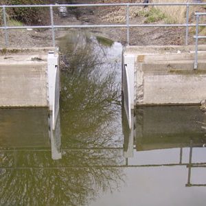 One of the latest innovations is our Beamless Tilting Weir. This is used where the watercourse could be subjected to a high volume of debris. Small boats and canoes are able to cross a beamless weir.